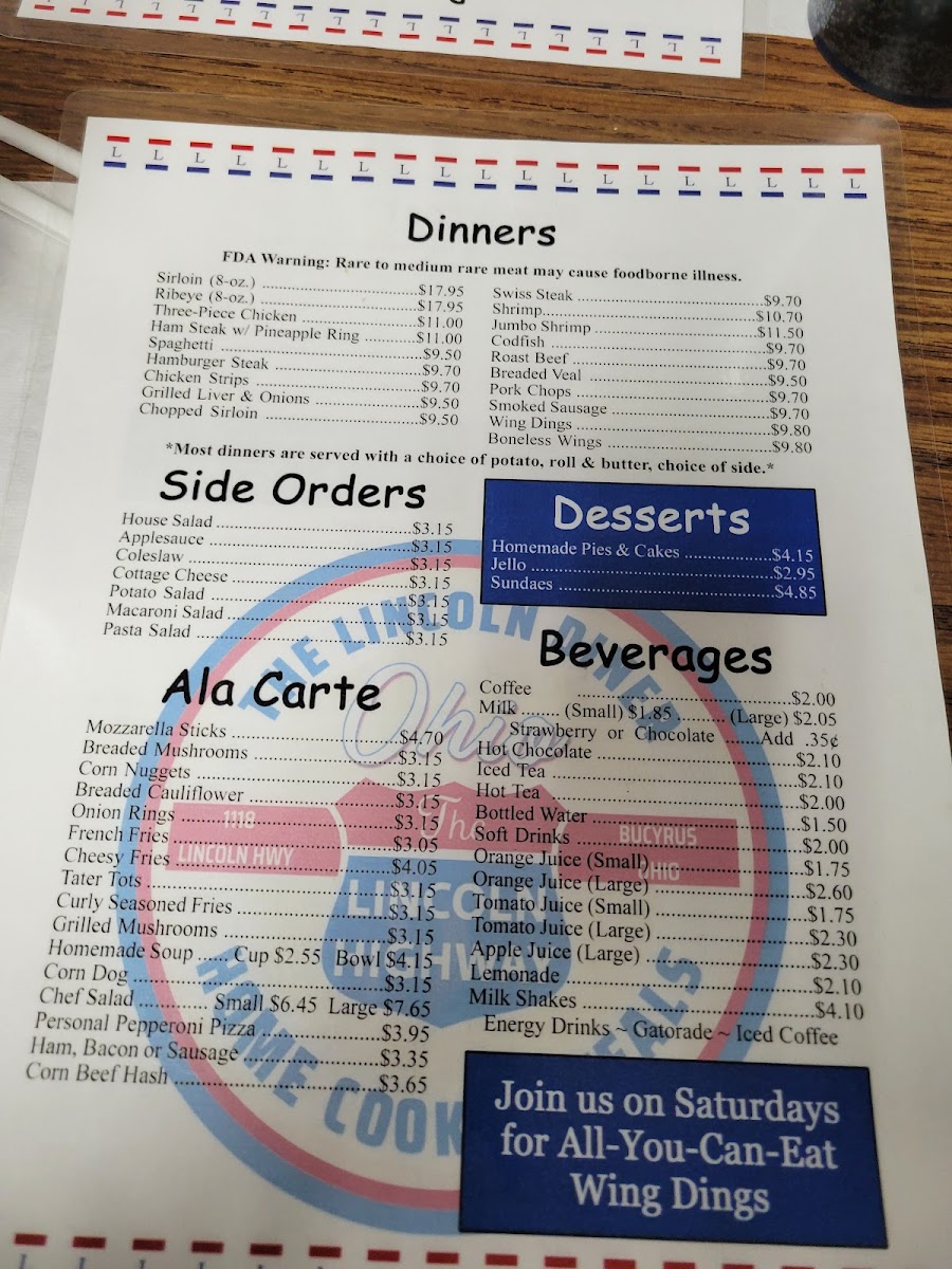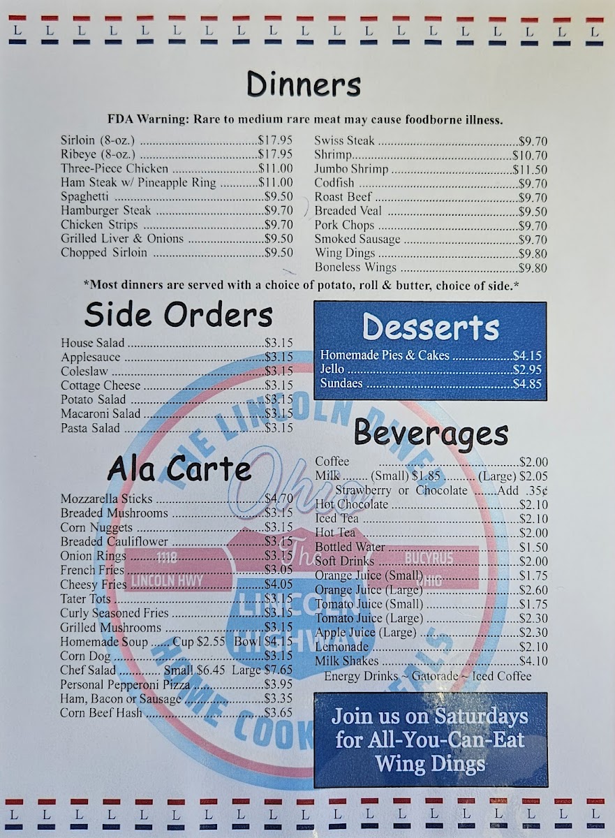 The Lincoln Diner Menu